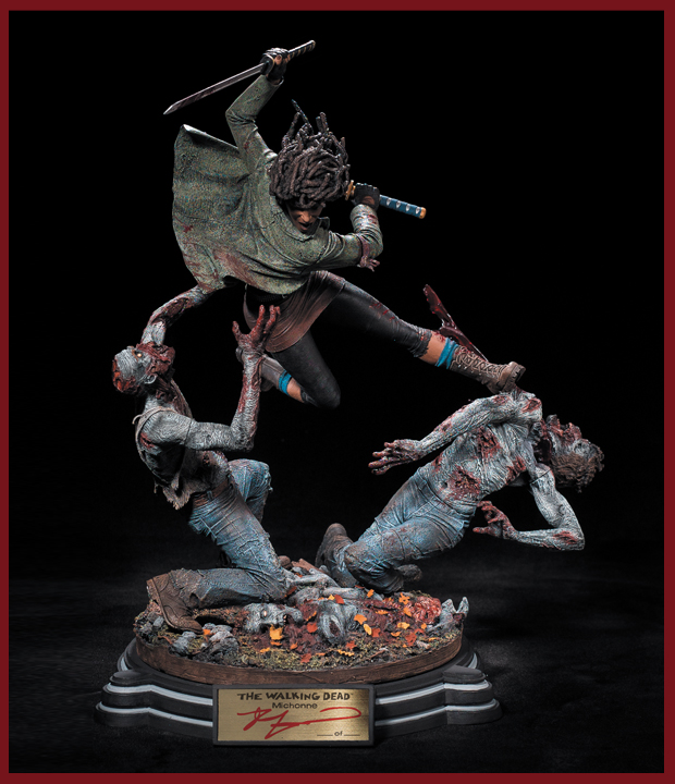 Priced at $295.00 (free shipping in the USA and Canada), The Walking Dead Michonne statue will be limited to only 1500 individually numbered pieces. Each sequentially numbered piece is hand-signed by The Walking Dead creator Robert Kirkman and will include a Certificate of Authenticity hand-signed by Todd McFarlane.