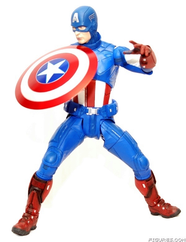We have uploaded over 60 new photos of NECA's first Quarter Scale Marvel Avengers action figure: Captain America. In stock now at many fine retailers, such as BigBadToyStore.com and ToyWiz.com, the Captain America action figure stands 18" tall and features loads of detail. He’s got over 25 points of articulation, including neck, shoulders, torso, elbows, hips, knees, wrists, and more. Includes Cap’s signature shield with straps and interchangeable hands. Limited to only 7500 pieces and priced at $84.99.