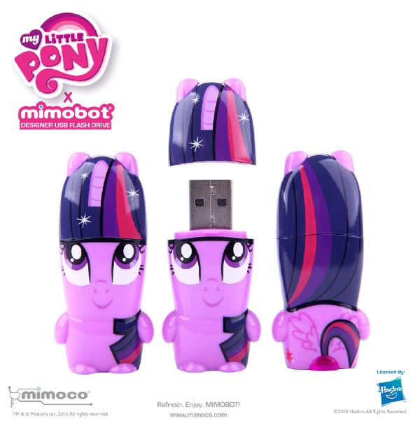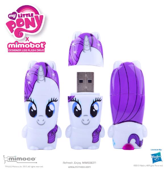 Mimoco, in collaboration with Hasbro, announces their new My Little Pony: Friendship is Magic X MIMOBOT Series of flash drives, available in up to 128GB as well as USB3.0 speeds. The collection showcases Rarity, Twilight Sparkle, and Rainbow Dash in MIMOBOT stylistically illustrated flash drive form. Each MY LITTLE PONY MIMOBOT drive also comes preloaded with extra digital goodies called Mimory. The bonus My Little Pony-themed content includes the MimoDesk personalization suite of super cute wallpapers, icons, and avatars, exclusive MimoByte sound software, as well as an entire digital issue of the My Little Pony comic-book, videos, and a preview of the gorgeous new watercolor Pony adventure book “My Little Pony: Under the Sparkling Sea” by award-winning illustrator Mary Jane Begin!