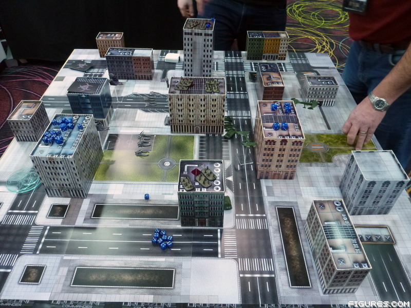 One of the most eye-catching displays in this year’s GAMA exhibit hall was the massive Cityscape at the Hawk Wargames booth. Part of their Dropzone Commander miniatures game, the city package allows you to build a 6’ by 4’ fully customizable urban battlefield in the popular 10mm scale. The Cityscape box set comes with 20 cardboard buildings and 24 double-sided ground tiles so you can create tons of different designs for your game. And of course while it’s perfect for Dropzone Commander, the Cityscape could be used for other miniature games as well.