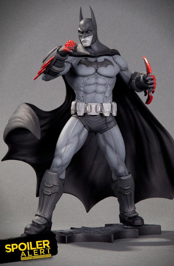 DC Collectibles, through a series of teaser photos, has fully revealed their new Arkham City Batman Statue. Details to be announced, but I'm liking the splash of blood red on the black and white sculpture.