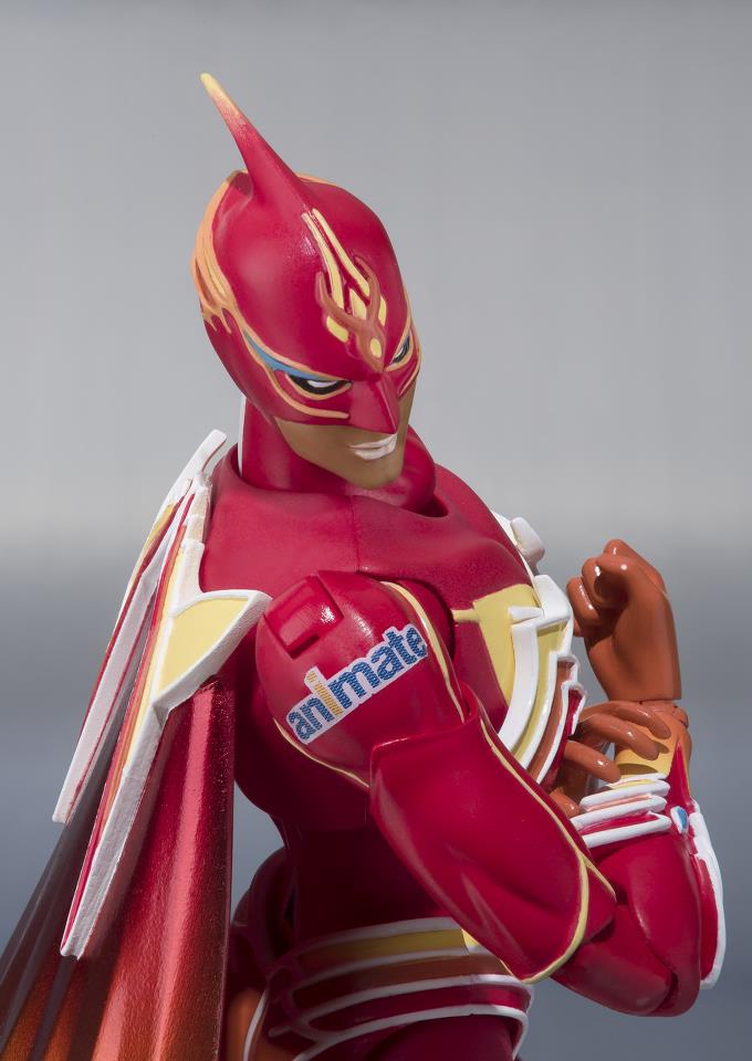 The flamboyant hero Fire Emblem, whose alter-ego Nathan Seymour owns his sponsor company Helios Energy, joins the Tiger & Bunny S.H.Figuarts action figure series. Previously offered as a Tamashii Web Shop Exclusive in Asia, this S.H.Figuarts figure has been made specially available to U.S. fans. Figure set features cape parts, flame effect parts, three sets of interchangeable hand parts, and special display stand.