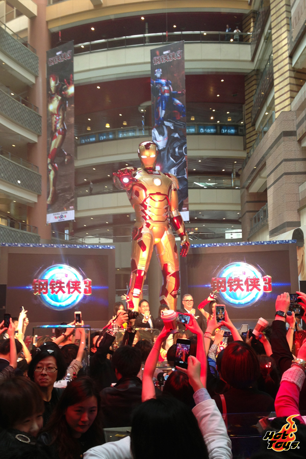 As Marvel’s Iron Man 3 continues to dominate the global box office, Disney China has now brought the Iron Man exhibition to Super Brand Mall in Shanghai, China. From now until May 19, fans in Shanghai will get to see the over 6 feet tall “World’s Largest Iron Man” and an array of Hot Toys Iron Man Collectible Figurines in person.