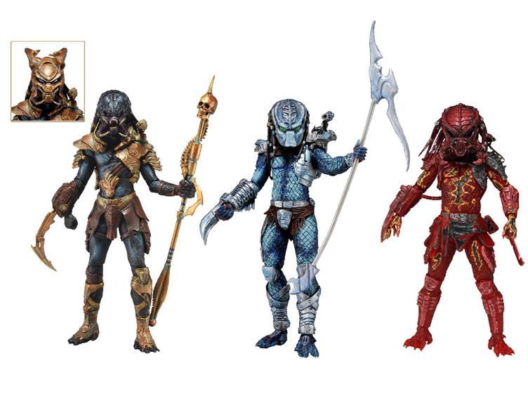 BigBadToyStore.com is now accepting pre-orders on NECA's Predators Series 10. Taking inspiration from the original Kenner Expanded Universe designs, NECA has applied modern sculpting, detail and articulation to upgrade these vintage Predators for the new millennium. Set includes Lava Planet Predator, Hive Wars Predator, and Nightstorm Predator.