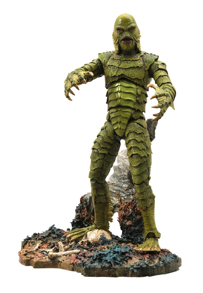 Just when you thought it was safe to go back in the water! Diamond Select Toys revisits the Black Lagoon with this all-new figure depicting the world-famous Creature, first seen in 1954's Creature from the Black Lagoon. This 7-inch-scale action figure features a new sculpt with over 16 points of articulation, and can strike a wide variety of poses on his deluxe display base, which features a skeleton and an undersea rock formation. The Creature and his base come packaged in Select-style display packaging, with spine artwork. Sculpted by Jean St. Jean. (Item #APR141980, SRP: $24.99)