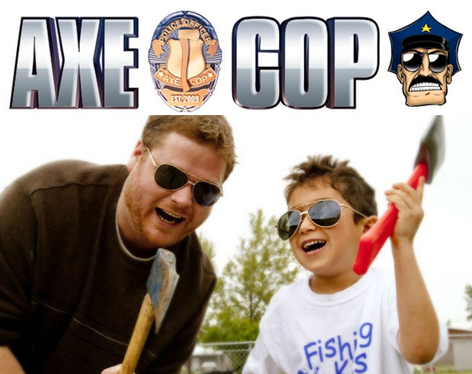 Axe Cop was originally created when (then) 5 year old Malachai told his older brother, Ethan, the story of Axe Cop one day while playing. At the time, neither of the brothers ever imagined Axe Cop would grow into a cultural phenomenon comprised of a popular website, best selling graphic novels, a cartoon, and action figures.