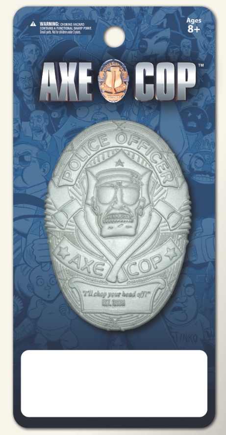 On Friday, July 21st, from 12noon-1pm, both writer, 8-year-old Malachai Nicolle, and artist Ethan Nicolle, will appear at Mezco's booth #3445 to sign Mezco's Summer Exclusive Axe Cop Badge prop-replica (pictured below). This will be their only scheduled autograph signing at SDCC.