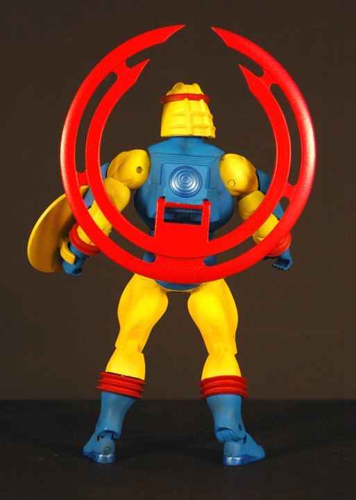 Mattel has just posted several images of the new Masters of the Universe Classics Sy-Klone figure. After a few months of speculation and rumors, the official April 2011 figure for MOTUC will be Sy-Klone.Previewed in Toy Fare magazine this month, here are some more image of April 2011's Club Eternia figure! He comes complete with shield and clip on Solar Ring. The final radar sticker will be a lenticular just like the original toy!