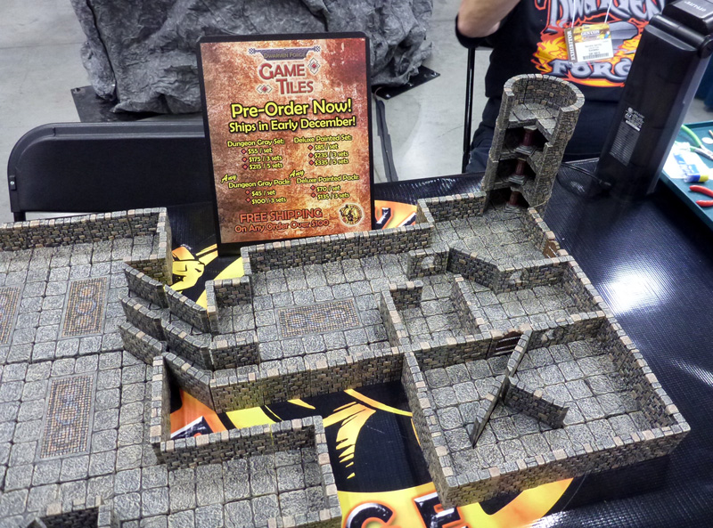 At Gen Con this year Dwarven Forge held court with displays of the type of dungeons you can only build with their products, intricate and sprawling locations filled with doors, traps, walls, and tons of interesting elements that make each dungeon unique. Several different components were on sale at the booth, including exclusive preorders to get in on the most recent Kickstarter campaign with fulfillment due in December.