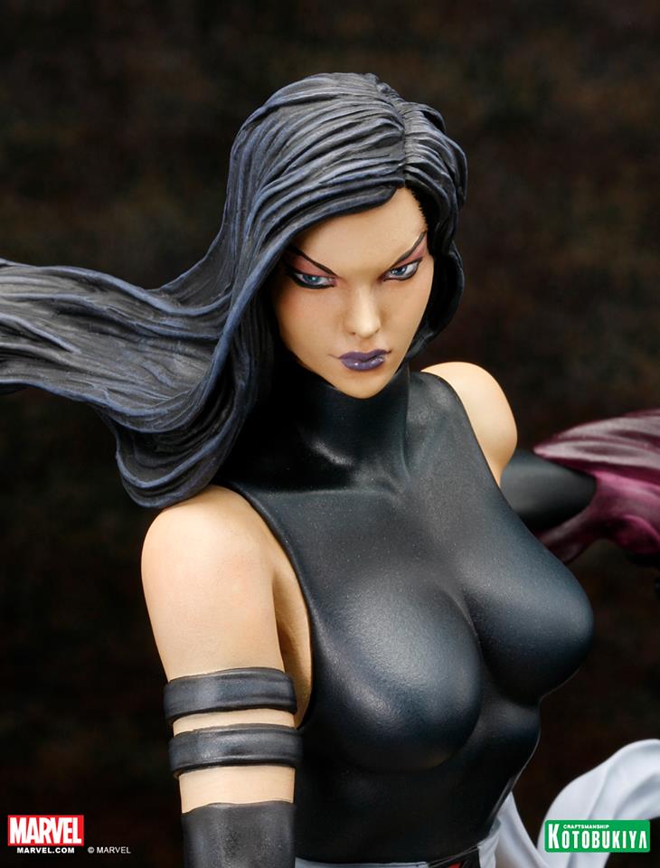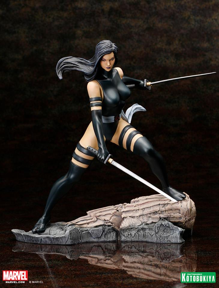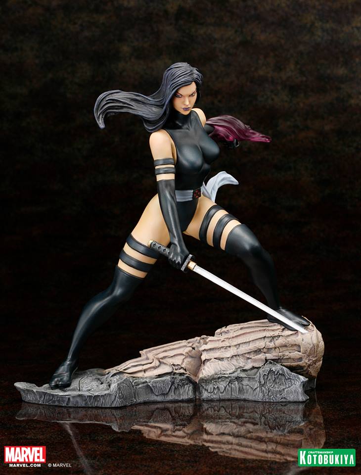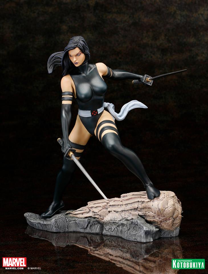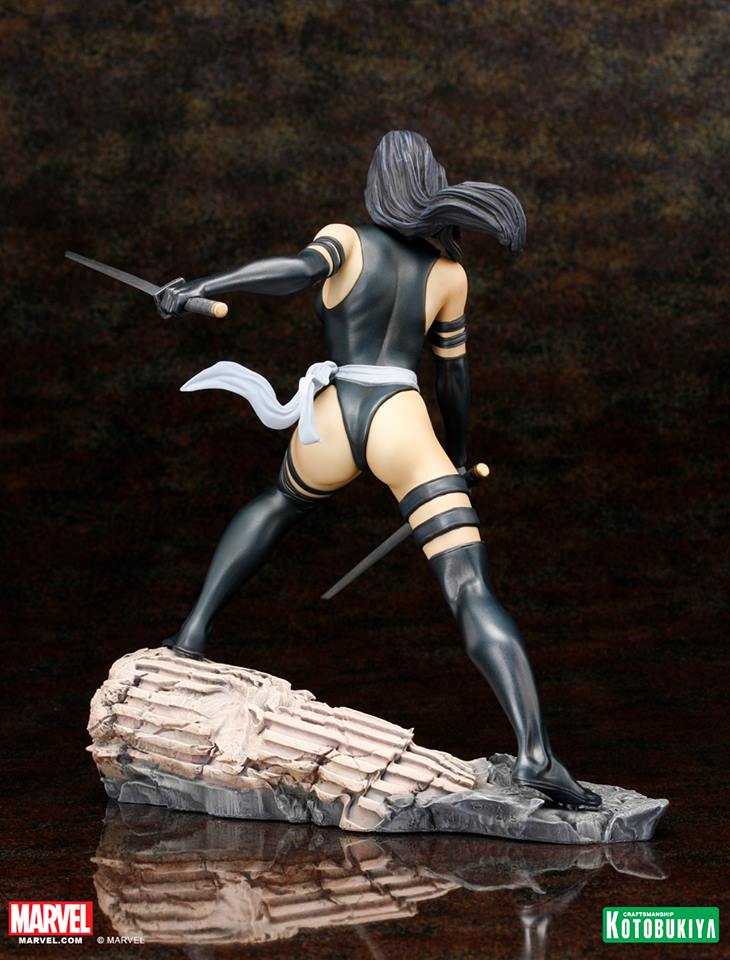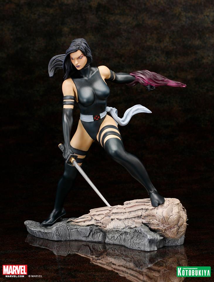 Kotobukiya has posted new photos of their next Marvel Comics Fine Art Statue: Psylocke. First shown at San Diego Comic-Con (see HERE), Psylocke is based on her appearance in the X-Force series and includes interchangeable left arms: one clutching a katana (pictured above) and another charging up a psi-bolt (below). Look for her in March 2014.