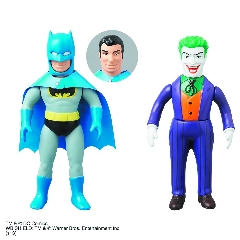 The DC Heroes Sofubi Batman Figure (Item Code: OCT132096, SRP: $79.99) is a PREVIEWS Exclusive item standing at 9 ¾ in. tall, and comes with a removable facemask, showing off Bruce Wayne’s identity. The DC Heroes Sofubi Joker Figure (Item Code: OCT132097, SRP: $79.99) is also 9 ¾ in. tall and made from Sofubi, while holding to the iconic look of the Joker through dress and facial features. This hero and villain pair have been upgraded with a new material and paint design, making them more like works of art and a great find for collectors.