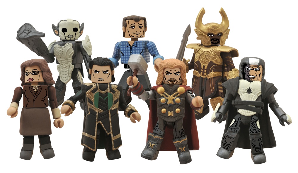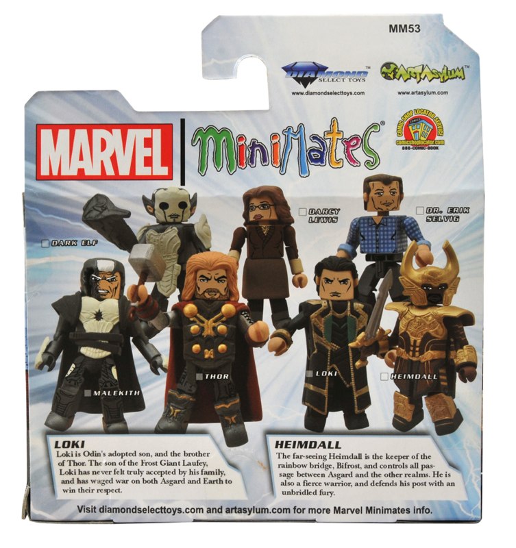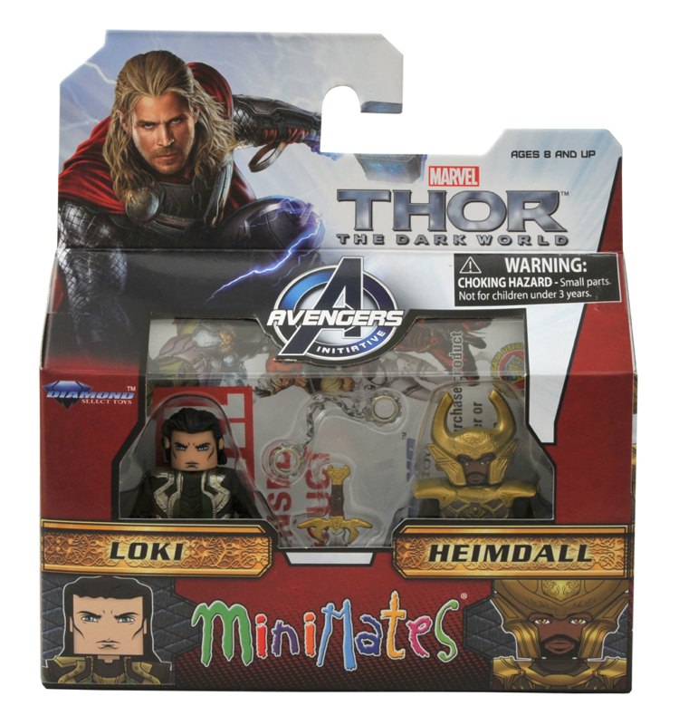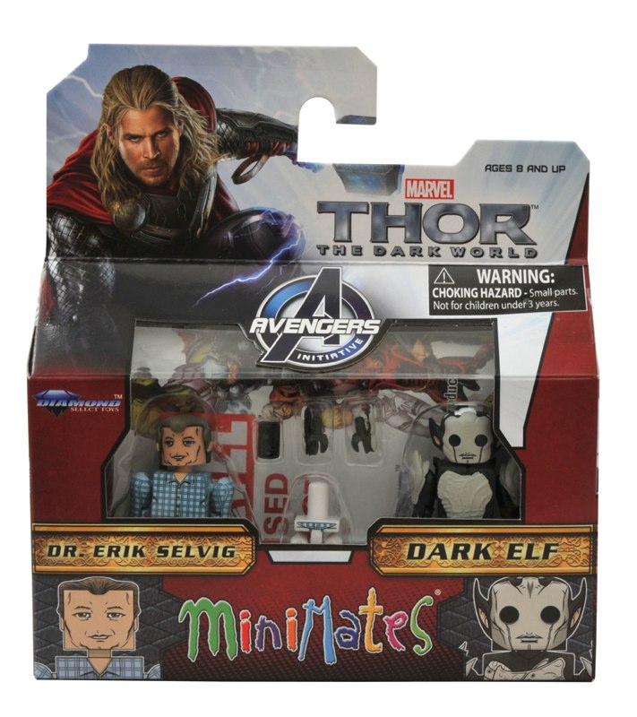 Thor: The Dark World hits U.S. theaters today, and while the series of Marvel Minimates based on the film is still a ways off, DST couldnt wait to show off the packaging. Check out the four two-packs in Marvel Minimates Series 53: Thor vs. Malekith, Loki vs. Heimdall, Selvig vs. Dark Elf and Darcy vs. Dark Elf.
