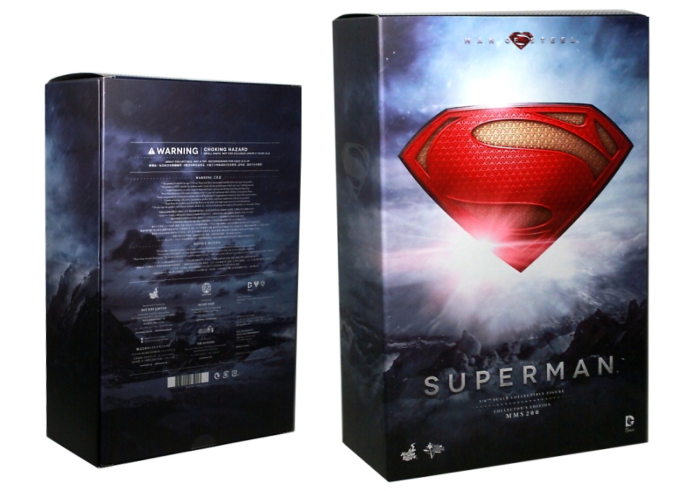 The packaging for Hot Toys' Movie Masterpieces have become quite standard now, which is perfectly adequate for what they’re trying to accomplish. A magnetic flap opens up to reveal a window to see what’s inside, but the box exterior doesn’t tell you anything else, if at all. The box actually reminds me of the Richard Donner Superman one-sheet, with the "S" shield among the clouds. If that was their intent, then they hit their mark.