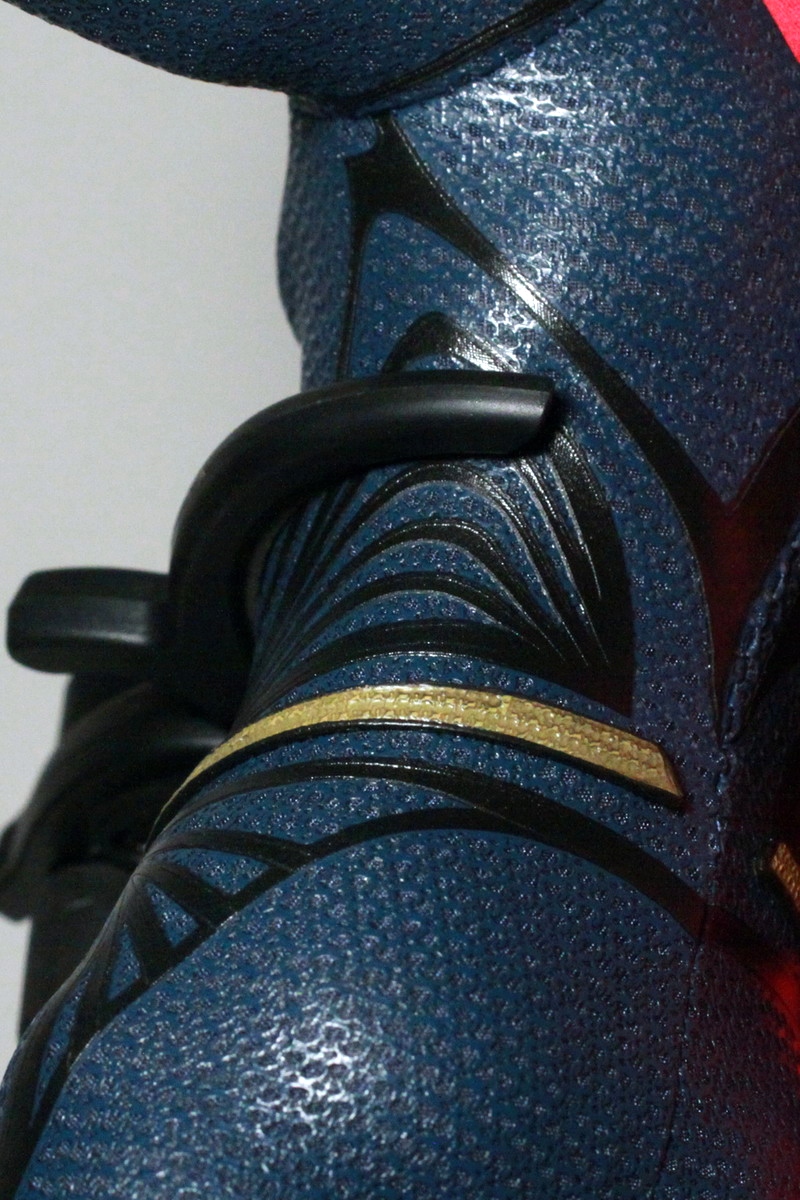 The face sculpt is on spot. They did a great work there. However I feel the Cape, the boots and the logo has too much red. Its really distracting given the fact that its a huge figure. The boots almost looks like plastic mold. Not accurate representation of the movie's costume.