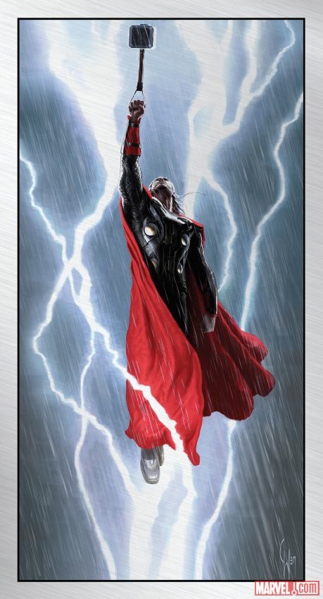 Thor rises in this distinct brushed aluminum metal finish. Hand-signed and numbered by artist Charlie Wen. Available only with purchase of Thor: The Dark World on DVD, Blu-Ray, or 3D Blu-Ray Combo Pack.