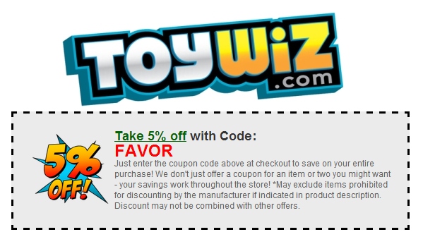 ToyWiz.com has thousands of in-stock items. Use the coupon code FAVOR and receive 5% off your purchase! Shop from an incredible selection of the newest and most popular action figures, toys, and collectibles including: