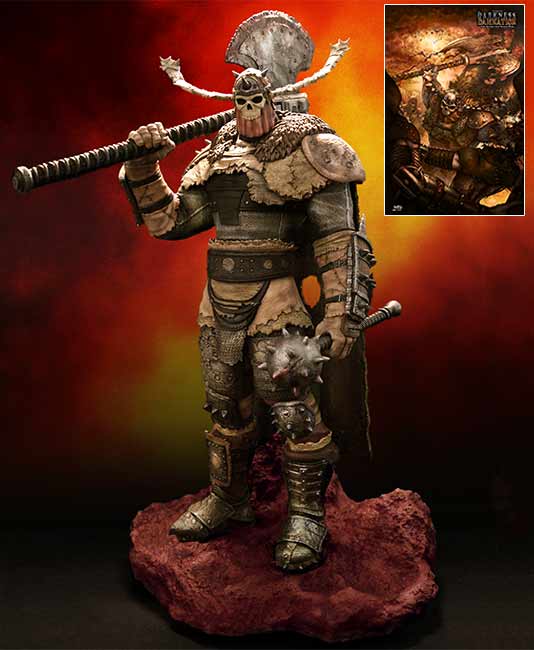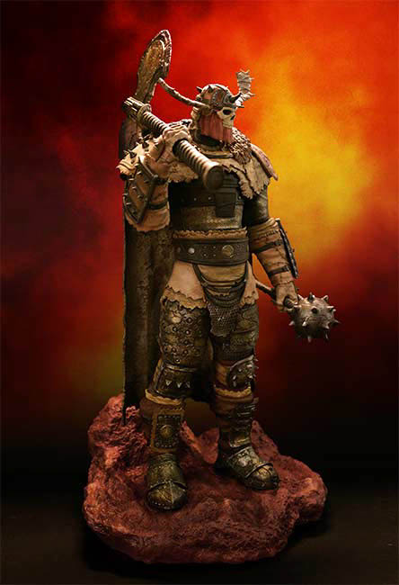 The HCG Exclusive version (pictured above - $349.95, 150 pieces) features an additional switch out hand with the Cleric holding Valktar the Accuser's severed head, and an 18" x 12" art print of the Cleric. A regular edition is also available (pictured below - $349.95, 500 pieces). Of Darkness and Damnation: The Cleric Statue is available for pre-order through hollywood-collectibles.com and is slated to ship third quarter 2014.The Cleric was trained by The Seven Brothers of the Everlasting Mourning and brought back to life to become the ultimate Hound of the Seatas' Legion of Hunters. Created to chase and take down the Acores and their Breed trespassing into the Mortals' World the Cleric not only would be the most feared and respected Hunter; he would fulfill the prophecy of killing Acores' leader The Talurondar.