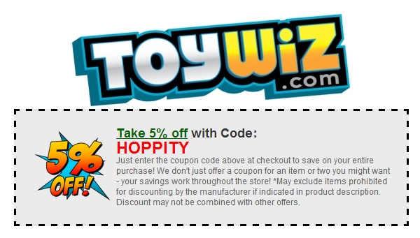 ToyWiz.com has thousands of in-stock items. Use the coupon code HOPPITY and receive 5% off your purchase! Shop from an incredible selection of the newest and most popular action figures, toys, and collectibles including: