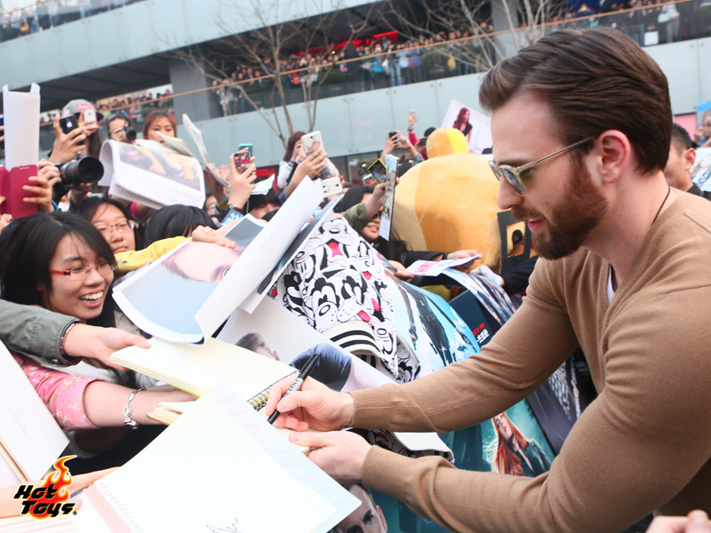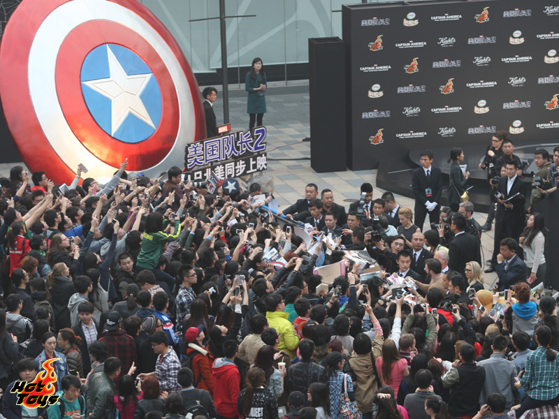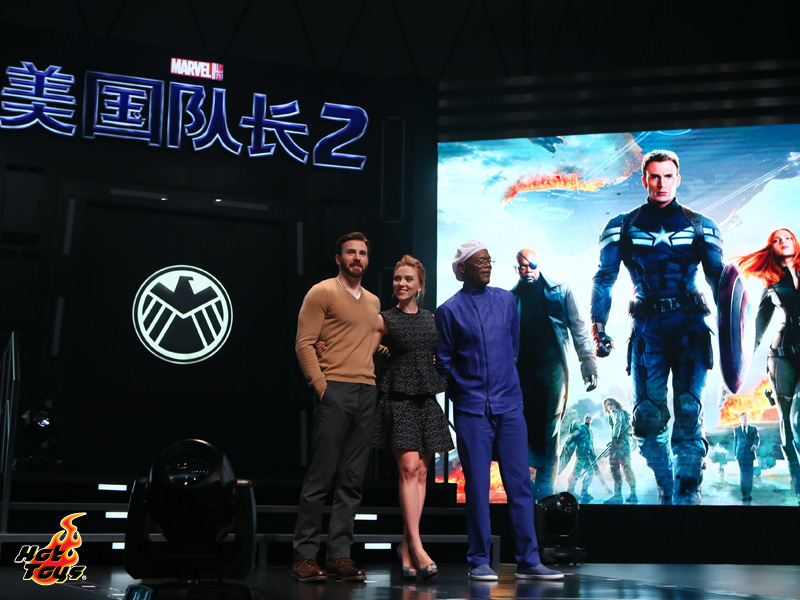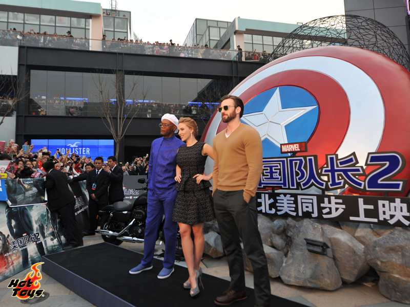 Marvel Studios’ upcoming movie Captain America: The Winter Soldier will be landing in theatres worldwide very soon. To help celebrate its release, the stars of the movie visited Taikoo Li Salitun in Beijing, China to attend a crowd-drawing event. In attendance was Chris Evans who plays Captain America, Scarlett Johansson as Black Widow, Samuel L. Jackson as Nick Fury and the Director's Anthony and Joe Russo.