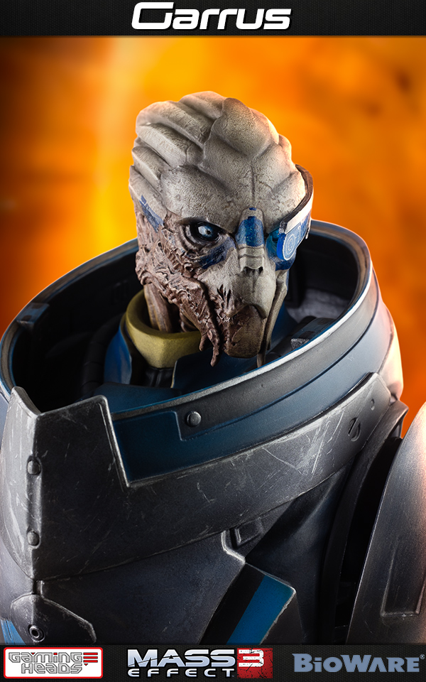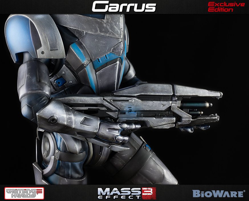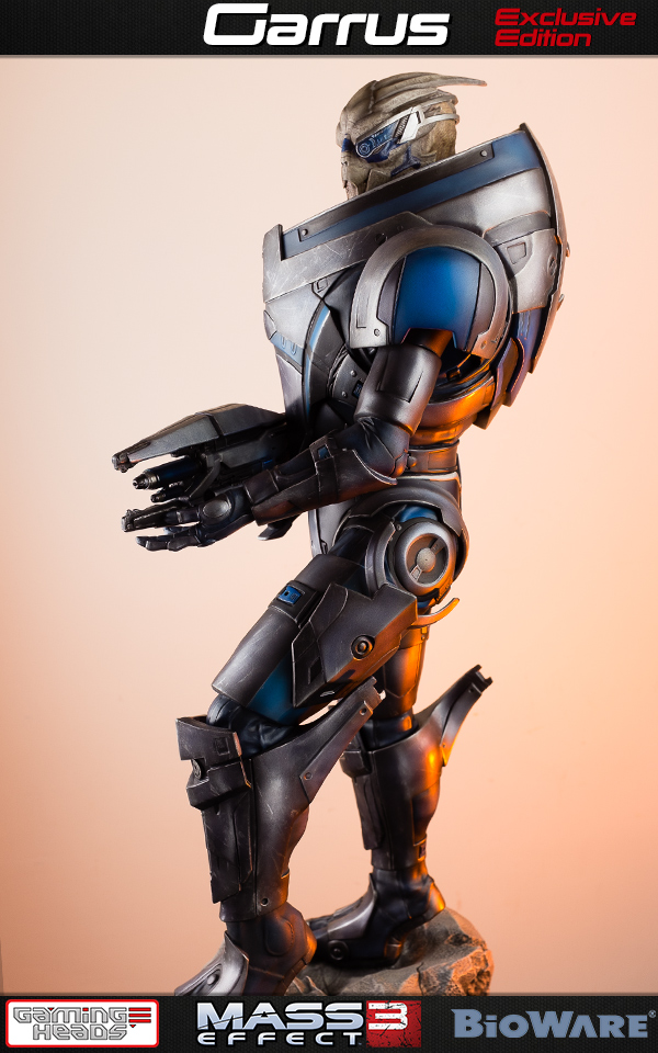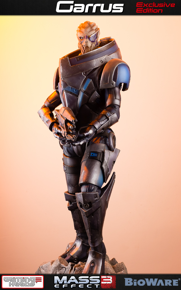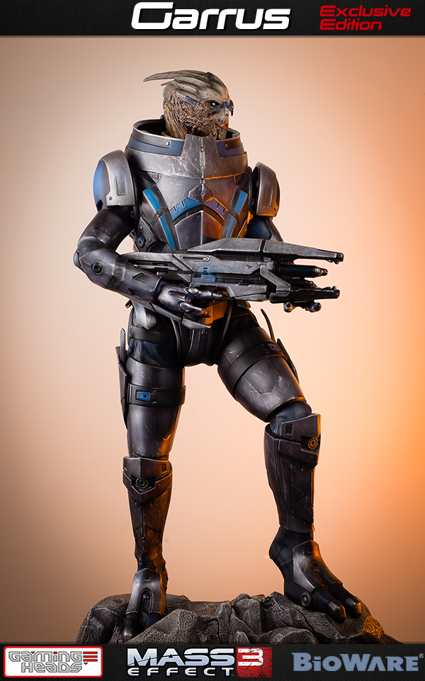 Gaming Heads presents the first in a new range of Mass Effect statues: Garrus Vakarian. Garrus stands 21 inches tall in his trademark armor, armed with the Incisor Sniper rifle. This standard release is priced at $329.99 and limited to 1000 pieces.