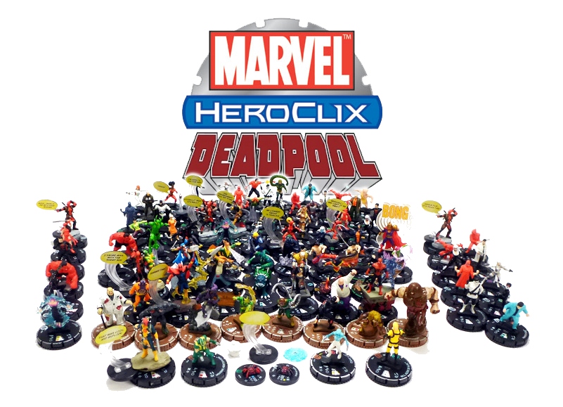 In recent years a lot of the main HeroClix expansion sets have evolved from following a theme or event to focusing on a specific character and his or her world. The latest set from WizKids Games focuses on a particular and peculiar Marvel Comics character who is more than a little popular: Deadpool! A fourth wall-breaking anti-hero who’s been on more teams than Wolverine, Wade Wilson first hit the scene in 1991’s New Mutants #98 as a villain, and he’s never looked back. The new HeroClix set celebrates the regenerating assassin’s long and storied career with multiple versions of the character (including the Deadpool Corps!), his friends and allies, a small selection of people who want to kill him, and more. There are also cool sub-themes like the Thunderbolts and even the start of a new batch of Marvel Zombie Villains as chases! Deadpool also brings some new mechanics like the Merc’s Word Balloons and lots of unique traits and special powers, as well as great looking figures that include long-awaited remakes as well as lots of characters who have never been clixed before. Read on for a complete look at the Deadpool set which you can find right now everywhere HeroClix is sold!
