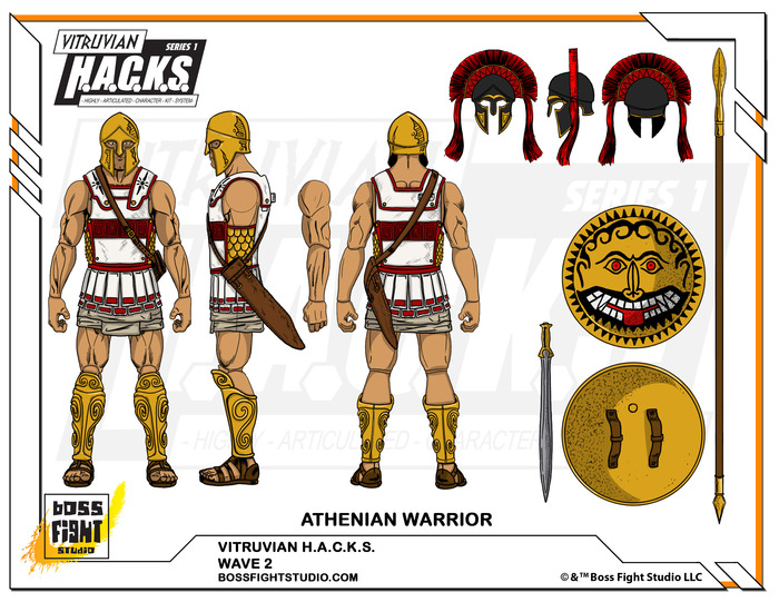 Wow, that was fast! As reported earlier this week HERE, Boss Fight Studio was looking to produce via Kickstarter a new 4" figure line called Vitruvian H.A.C.K.S.. Featuring a Greek Mythology theme, the four figure assortment of Spartan Warriors and Gorgans has now been fully funded ($77,241 pledged of $75,000 goal)... with 36 days still to go! Stretch Goals are now in reach, the first figure being a Pre-Curse Medusa ($90K) and a Vitruvian H.A.C.K.S. Greek Wave 2 ($105K) right around the corner. This second series will include an Athenian Warrior and a new Green Snake Gorgon.