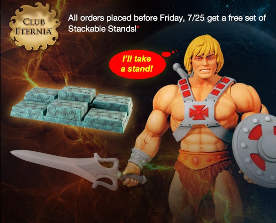 The subscription period for MattyCollector's 2015 Club Eternia is open now thru 8/18/14. Order by 7/25/14 and you'll get a free set of stackable stands (pictured below).
