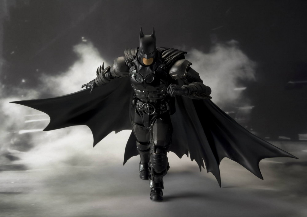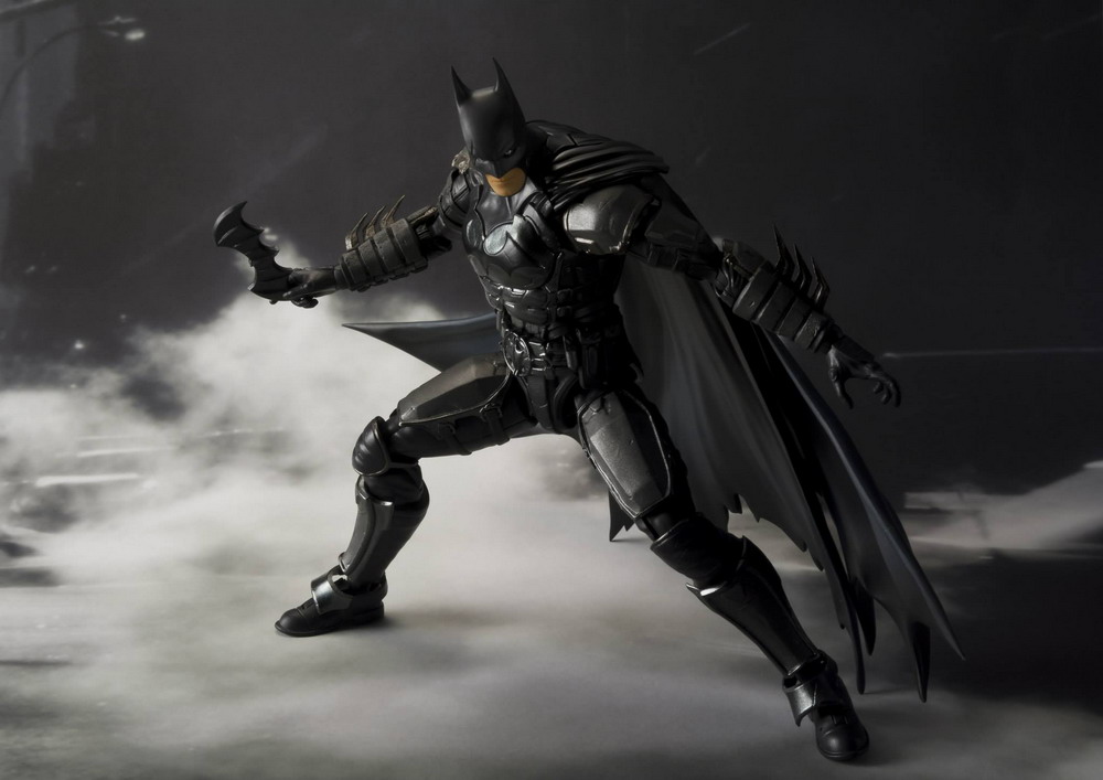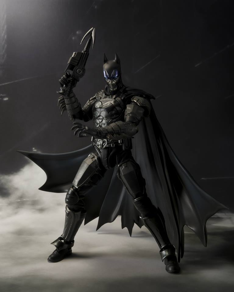 The S.H.Figuarts Batman (INJUSTICE Ver.) features a full array of accessories and an original design face mask part! Deluxe action figure set also includes interchangeable hand parts (two types), batarang x2, bat grenade, and grapple gun.