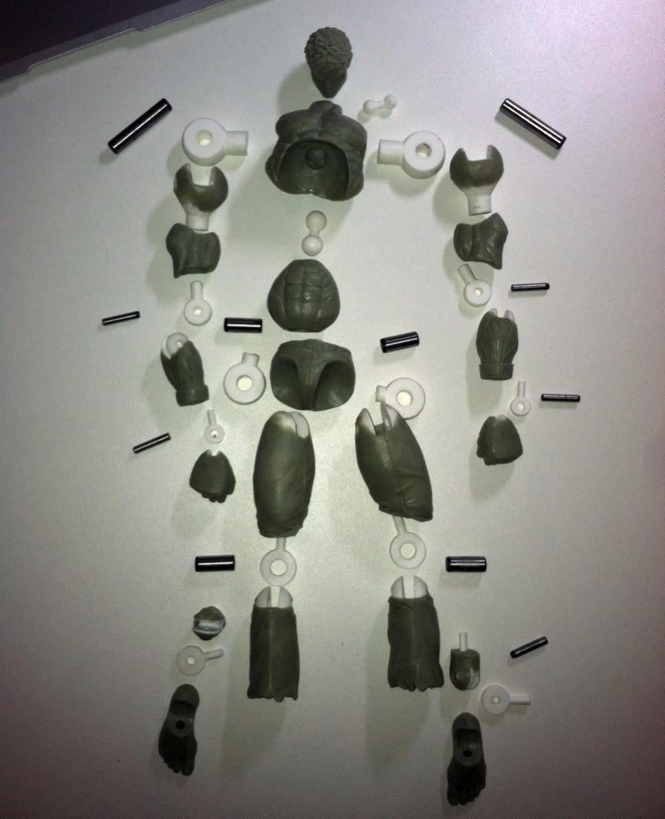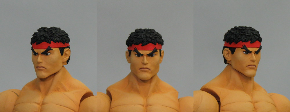 The Ryu Street Fighter action figures feature in-game design in a 6-inch scale. The figures feature micro fiber clothing for added detail and motion, the cloth Gi making it so that Ryu can get into the Hadoken pose, no blockage from a rubber Gi! Pictured above is a better look at the early clay prototype showing off the figure's sculpted detail, as well as a fully painted prototype showing off Ryu's game-accurate appearance. The photo below breaks down the figure, displaying Ryu's massive articulation range.