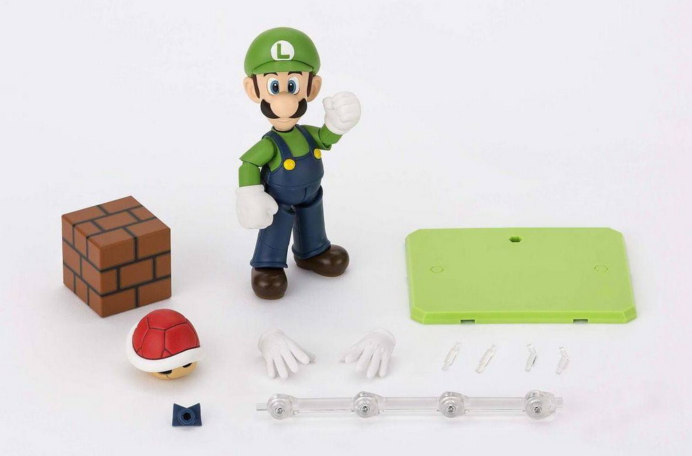 Unveiled at San Diego Comic-Con, Bluefin's next S.H.Figuarts Mario figure will Luigi! Arriving in January priced at a MSRP of $32.99, this set features red brick block, a red shell, interchangeable hand parts for holding red shell, shell connecting parts, and special display stand with support arms.