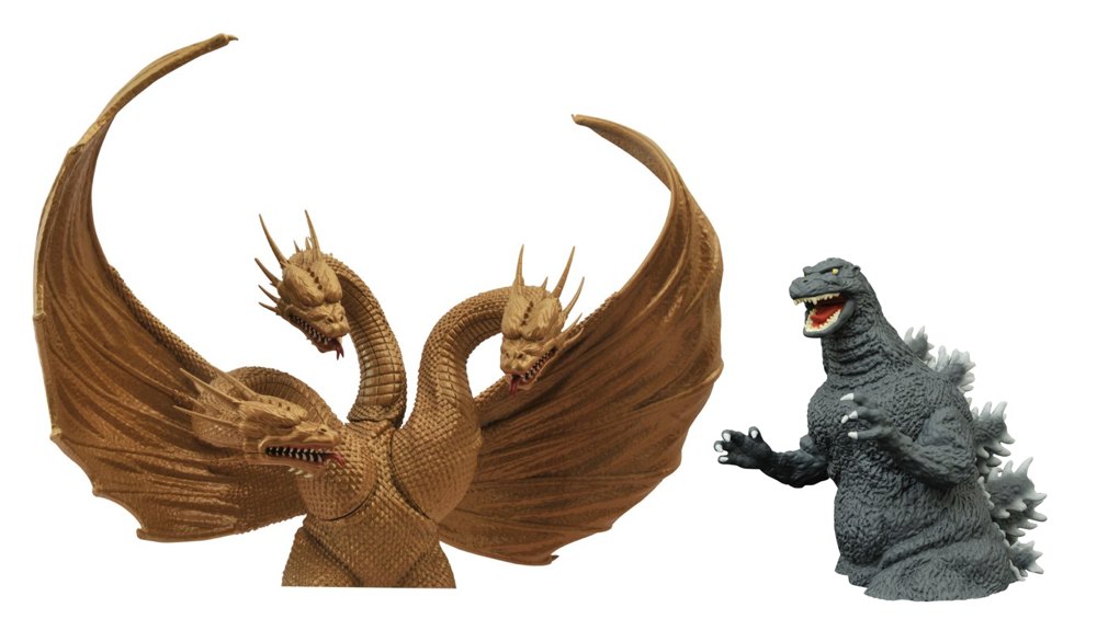Hail to the King! Godzilla has met his match with this vinyl bust bank depicting Ghidorah, the three-headed alien monster, as he appeared in 1991's Godzilla vs. King Ghidorah. Measuring approximately 8 inches, tall, the bank has a coin slot on its back for inserting your loose change, and an access door underneath. Have him battle your Godzilla bust bank for shelf supremacy! Sculpted by Gentle Giant. (Item #APR141987, SRP: $22.99)