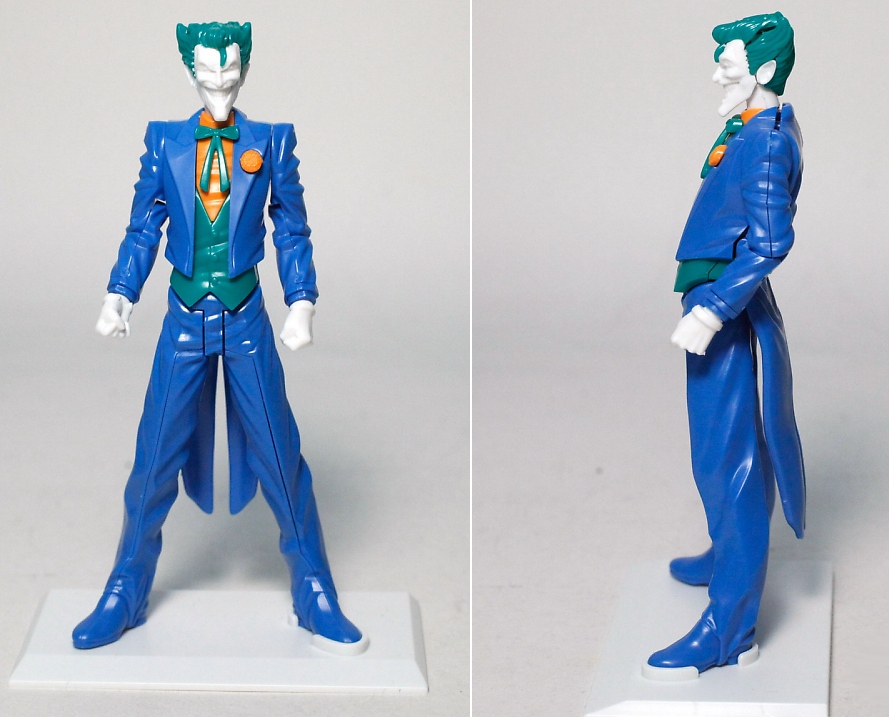 The Joker has articulation in his legs but it’s rather limited and a bit awkward looking. Otherwise, you can pose The Joker by his neck, wrists, elbows, and arms. The tuxedo tails also have some movement but is mostly unnecessary.