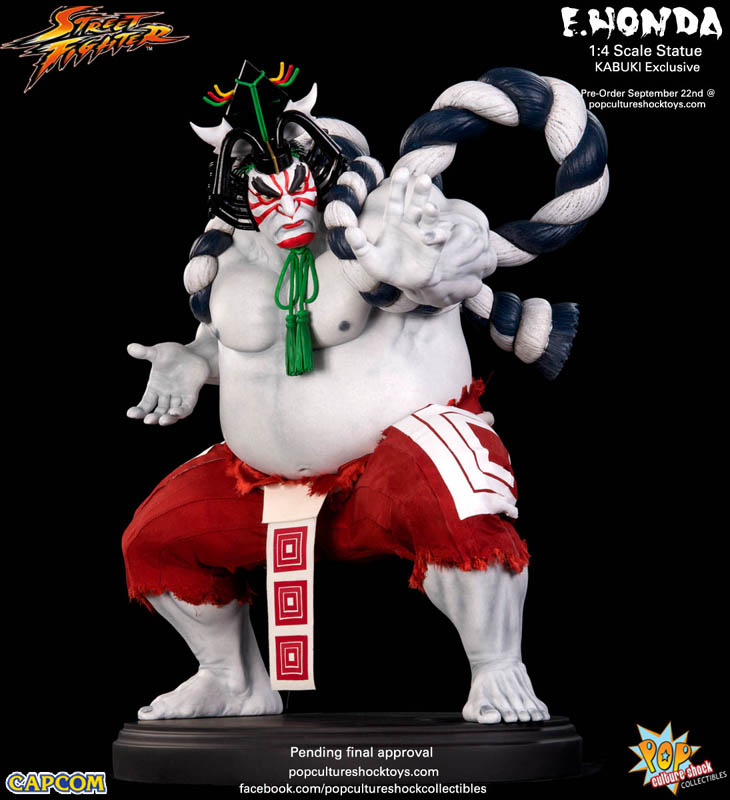 Check out the different E. Honda statues at Pop Culture Shock (http://www.popcultureshocktoys.com/2014/09/street-fighter-honda-statue/).