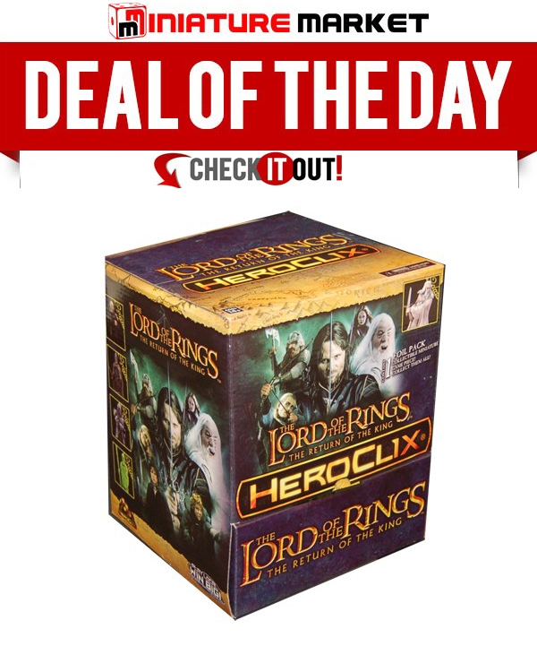 Today's Deal of the Day at Miniature Market is WizKids Games' Lord of the Rings Return of the King HeroClix Gravity Feed! This box of 24 individual single-figure boosters has awesome characters from the last chapter of the epic film series with Aragorn, Faramir, Gandalf, the King of the Dead, and more. Today's Deal of the Day brings you the full Gravity Feed for HALF OFF its regular price ($50) at only $25! HeroClix and Lord of the Rings fans, this one's for you.