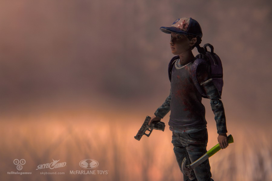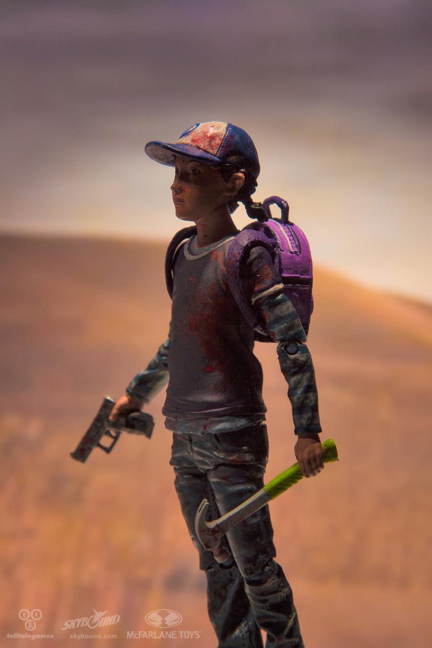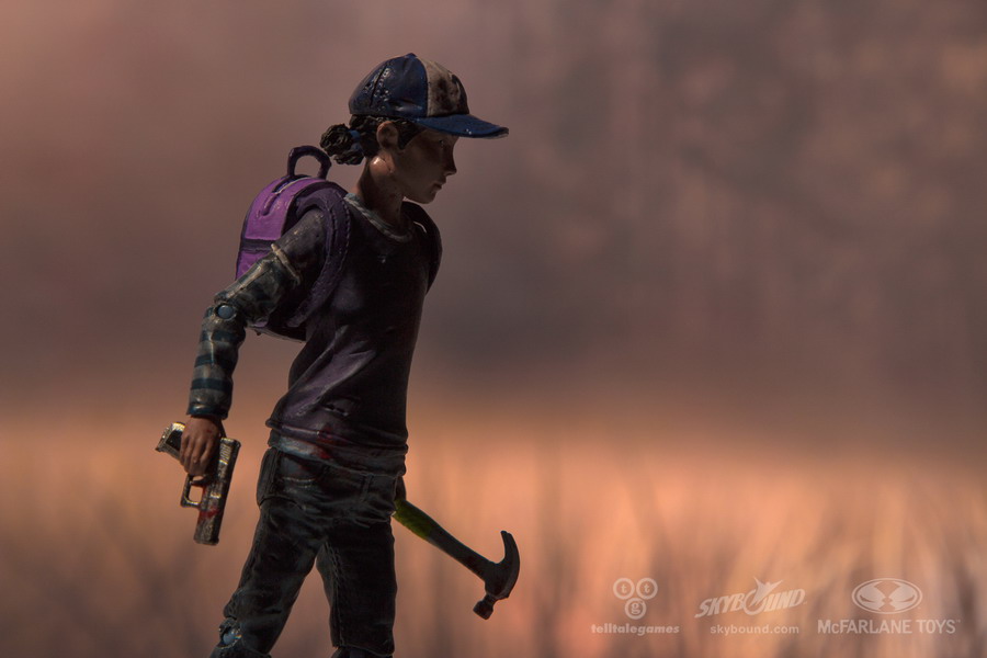 The official website for AMC's The Walking Dead (thewalkingdead.com) reveals that McFarlane Toys will be introducing Clementine to their line of Walking Dead action figures. The "Clem" action figure marks the first time a character from Telltale's The Walking Dead video game series has been produced. Exclusively from Skybound, the Clem figure will be available in both Full Color (pictured above) and in Blood Splattered Color (below) versions. The figure will come with backpack, pistol, and hammer. Stay tuned for full release details.