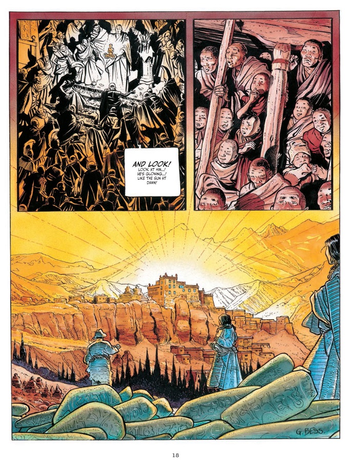The story as whole tells a life-long narrative which provides readers with insight into not only Gabriel’s own life, but the lives of those around him and specifically, their spiritual or religious beliefs and how the characters, Gabriel included, live out those beliefs. One could find cause to believe Jorodowsky is belittling Christianity as he make one of the early Christian missionaries not only crass and violent, but absurdly so. Likewise, throughout the book, one of the cruelest characters is a young Tibetan boy who grows up with Gabriel. As this young boy’s grandfather was one of the first Tibetans to become Christian, the young boy is called “Little Jesus.” And "Little Jesus" is not a nice boy…at all. He’s violent and mean, torturing Gabriel often. One could read into this the writer’s view of the Christian faith. However, the Buddhist monks likewise are ruled by a deceitful and destructive leader who forces them to ultimately become less than their faith calls them to be. Here too one could assume Jodorowsky finding fault with the Buddist religion. And yet, it’s neither of these and, instead, Jorodowsky's view is something most of us – in our hearts – fully understand: it’s not about any one faith or religious belief specifically, it's all in how one puts into practice the love, grace and holiness that each faith teaches that really matters.