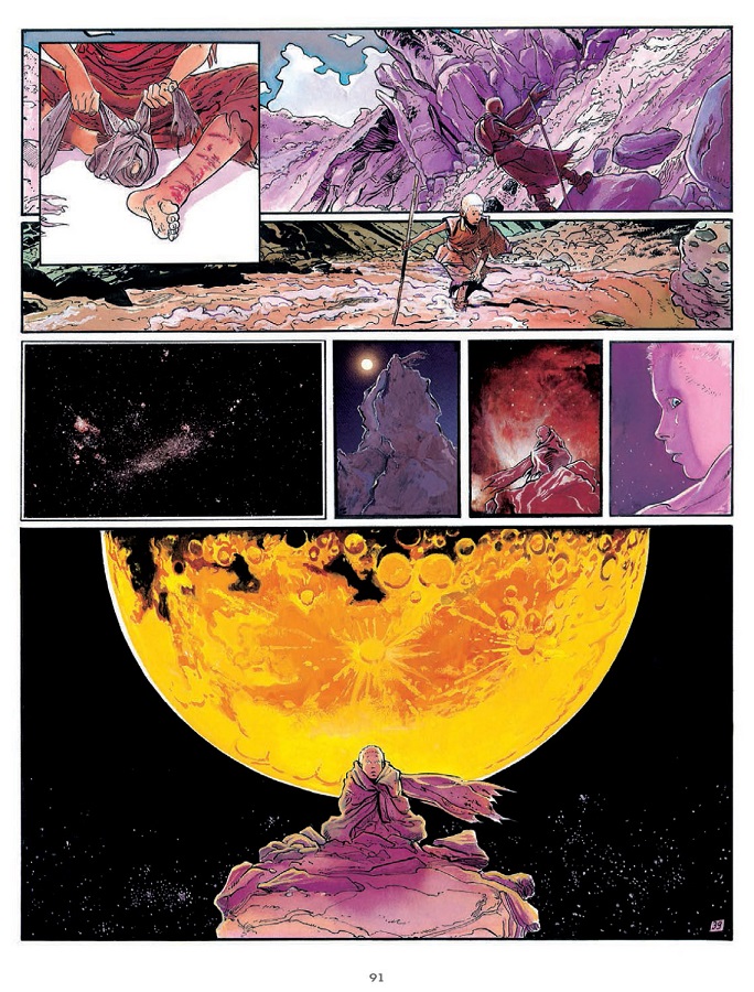 Bess, who would later collaborate with writer Jorodowsky on Son of the Gun, brings to life the writer’s words brilliantly here with a style that’s seemingly unique to many a European illustrators from the 1970s, 1980s and 1990s. In the same vein as the famous Moebius and other Europeans, Bess beautifully uses a variety of panel sizes and shapes in order to best capture the story as it unfolds, frame-by-frame. Maybe most impressive is Bess’ use of color, which contains many a shades of yellow, red, browns as well as the use of negative space in white, highlighting specific characters and actions throughout.