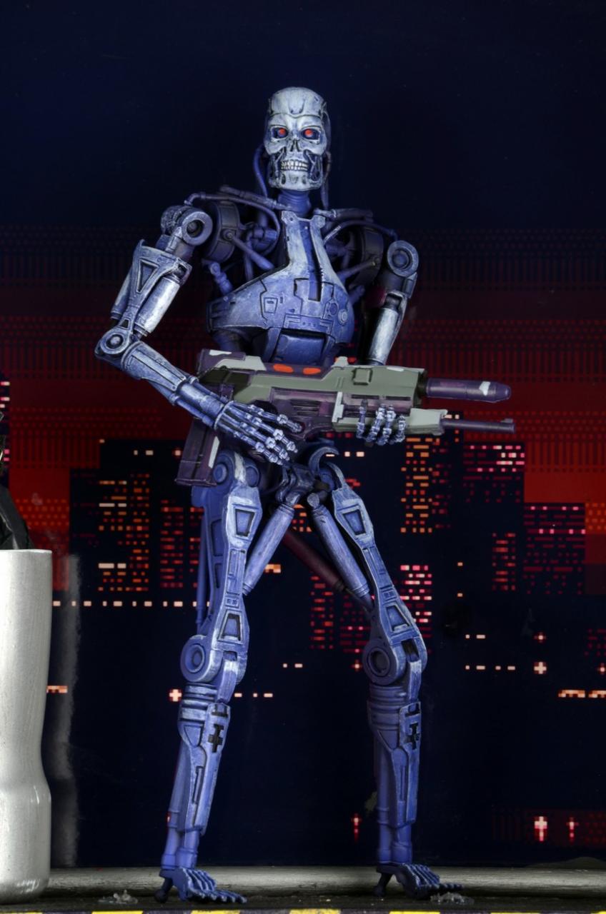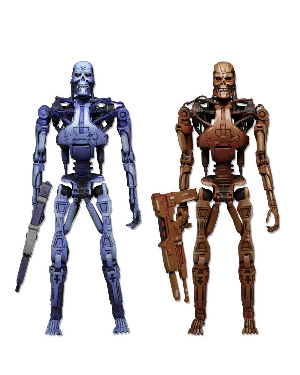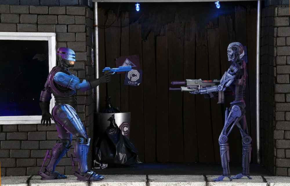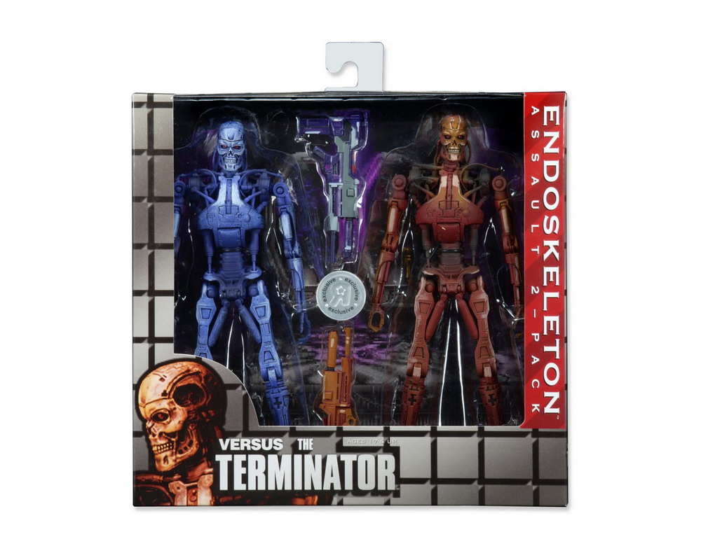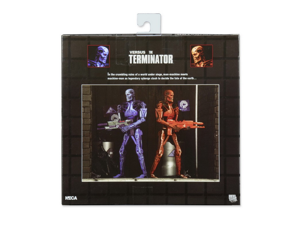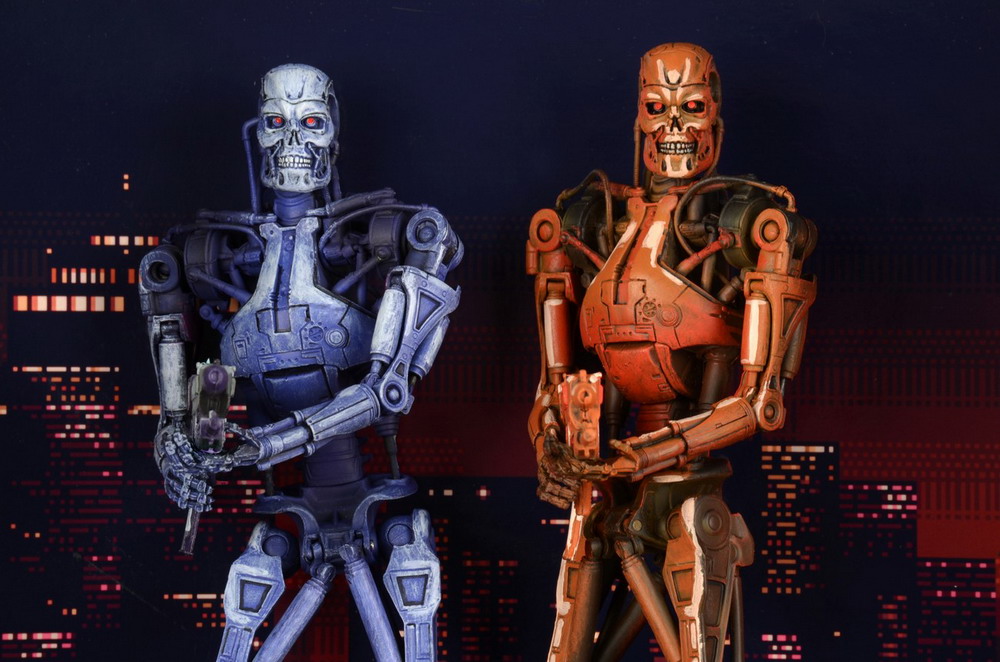 NECA has released new photography of their upcoming Robocop vs Terminator Endoskeleton 2-Pack. To be exclusive to Toys"R"Us stores in early December, this action figure set includes blue and red Terminator Endoskeletons, just as they appeared in all their 16-bit glory back in the Robocop vs Terminator video game. Each is ready to take on Robocop (sold separately) with phased plasms rifles.