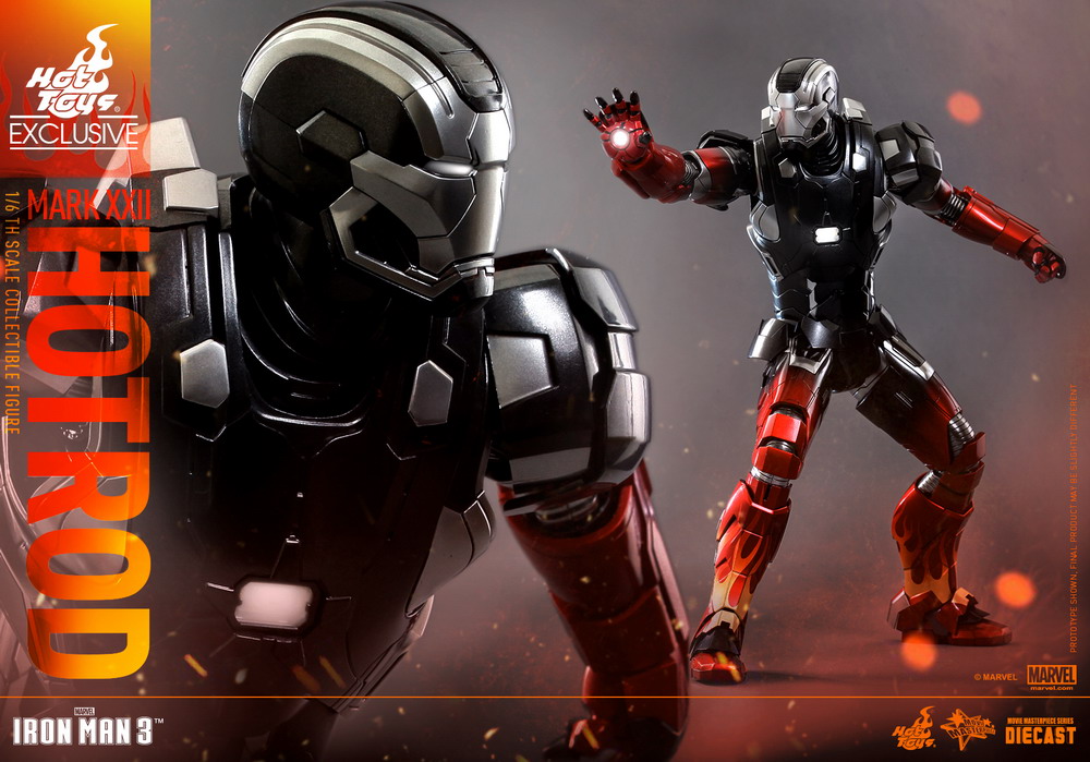 - Authentic likeness of Hot Rod (Mark XXII), the War Machine 2.0 Prototype Suit, in Iron Man 3