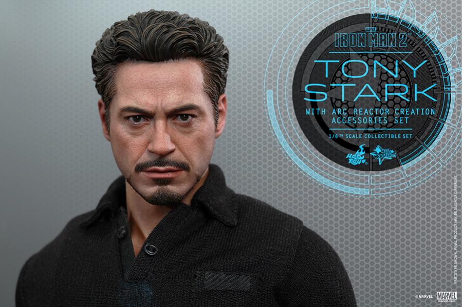 Hot Toys introduces today the new 1:6th scale Tony Stark with Arc Reactor Creation Accessories Collectible Set. This collectible set includes a specially crafted collectible figure based on the image of Robert Downey Jr. as the genius billionaire Tony Stark in Iron Man 2, featuring a newly developed head sculpt, an advanced body with light-up chest light, detailed outfit, the Captain America shield prototype which he has used to level the particle accelerator and workshop accessories.