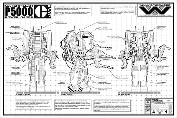 Two versions of the Power Loader statue are being offered by hollywood-collectibles.com for pre-order: a standard release priced at $1199.95 and limited to 1000 pieces, as well as a HCG exclusive (also $1199.95, but limited to 350 pieces) that includes a bonus high quality 24" x 18" print of the Powerloader blueprints and specs sheet.