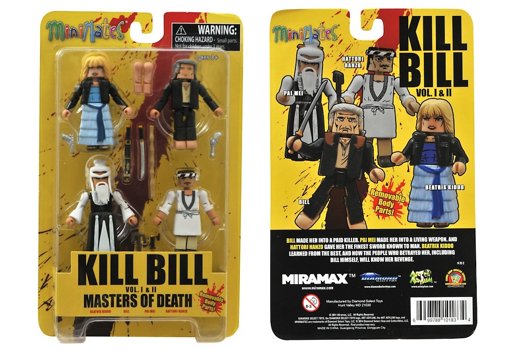 Beatrix Kiddo was not always a sword-wielding, highly skilled assassin. It took years of training, and the newest Kill Bill Minimates box set features the men who made her what she is today. Pai Mei, Hattori Hanzo and Bill himself join Beatrix Kiddo in the Masters of Death box set, each with 14 points of articulation and a variety of interchangeable parts and accessories. Comes packed on a full-color blister card. Designed by Art Asylum! (Item #SEP142252, SRP: $19.99)