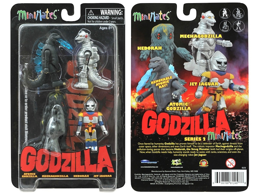 The Classic Godzilla Minimates line continues, with new 2-inch mini-figures of Godzilla and his greatest foes! Series 2 includes tiny versions of Atomic Godzilla, Mechagodzilla, Jet Jaguar and Hedorah the Smog Monster, each featuring a variety of interchangeable parts. Mix and match to create your own kaiju hybrids! Comes packed on a full-color blister card. Designed by Art Asylum! (Item #SEP142253, SRP: $19.99)