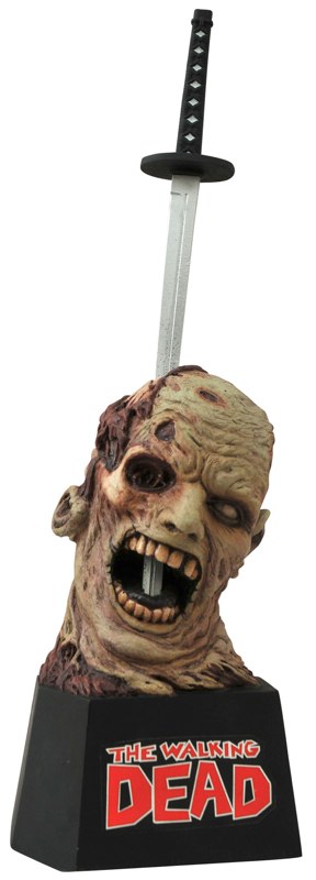 The bad news: Your mailman is a zombie. The good news: Opening letters just got awesome! This letter opener is a 10-inch metal replica of Michonne's sword from The Walking Dead comic book, and its holder is a 7-inch resin zombie head. Sink the blade deep into the walker's skull every time you use it, and you'll feel like a hardened zombie killer every time you go to the mailbox! Packaged in a full-color box. (Item #JUL142042, SRP: $89.99)