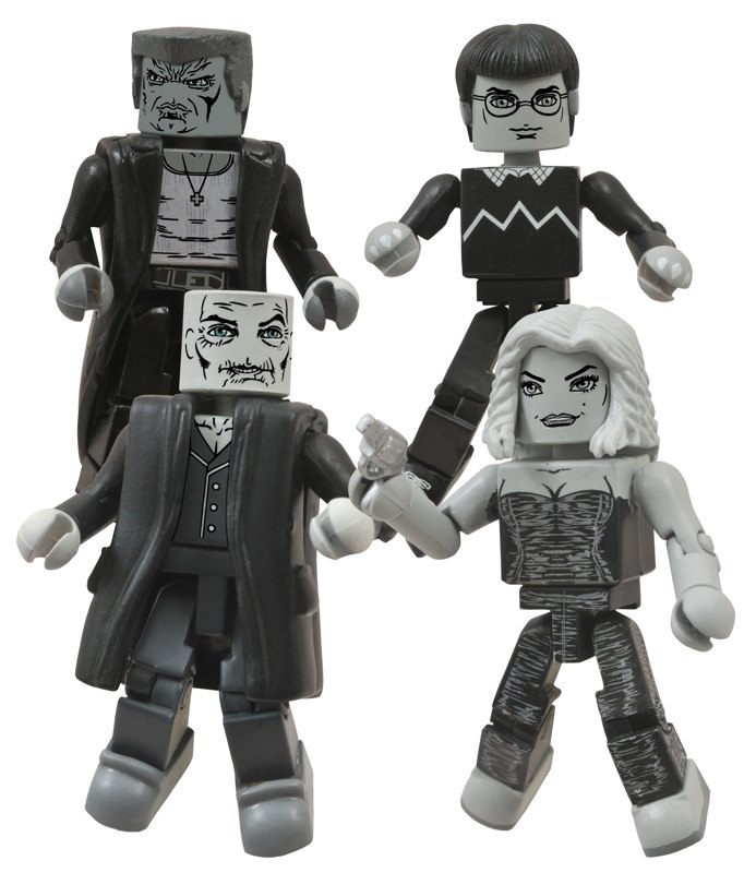 They killed Goldie. And now they’re gonna pay. Marv barrels his way into the Sin City movie line, with a four-pack of Minimates based entirely on his storyline, “The Hard Goodbye”! With Marv, Wendy, Kevin and Cardinal Roark in one box set, this is guaranteed to be one of the most hard-boiled Minimates sets ever made! Each Minimates mini-figure stands 2 inches tall and features a variety of interchangeable parts, weapons and accessories. Comes packaged on a full-color blister card. Designed by Art Asylum! Coming this fall! ($19.99, item #AUG142282)
