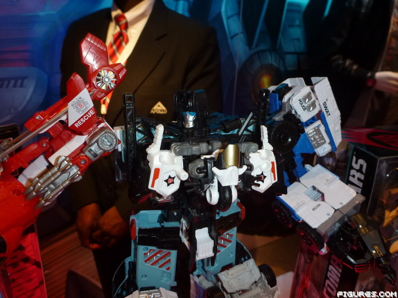 2015 is definitely going to be another big year for Hasbro and the Transformers line as we saw at the big press event at New York Toy Fair. The presentation ran through all of the lines starting with the kid-focused products like the Rescue Force Recruits. The big news, of course, is the launch of the Robots in Disguise television show coming to the Hub March 14th. Hasbro is fully supporting it with toys as well as through app partnerships. Kids of all ages will be able to get their hands on a wide array of toys including One-Step Changers (like Drift, Fracture, Thunderhoof), Legion toys (Fixit, Steeljaw), Warriors (Sideswipe, Jazz), Three-Step Changers (Steeljaw), Mini-cons (Deployers Drift and Fracture each with two Mini-cons, plus individual minis), 11 inch tall Mega Optimus with multiple Mini-con ports, and the massive 19 inch tall Super Bumblebee.