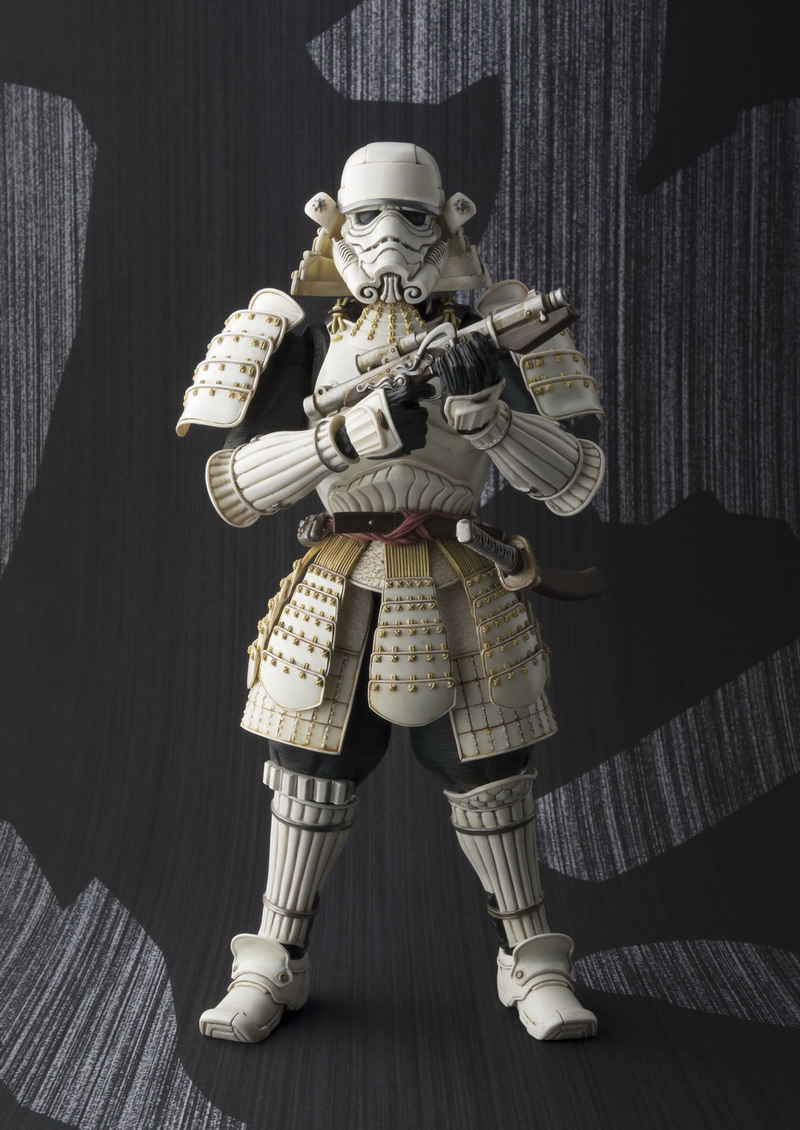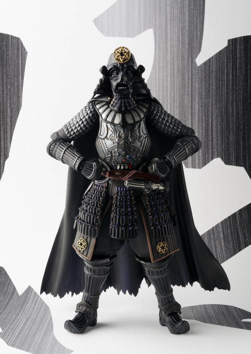 As shown at Toy Fair 2015, Bluefin Tamashii Nations is releasing a new Star Wars action figure series called Movie Realization. An interpretative take on the Star Wars characters, the new series depicts Lord Darth Vader and his Imperial Forces as samurai warriors. The first two figures are slated for release this June and include: