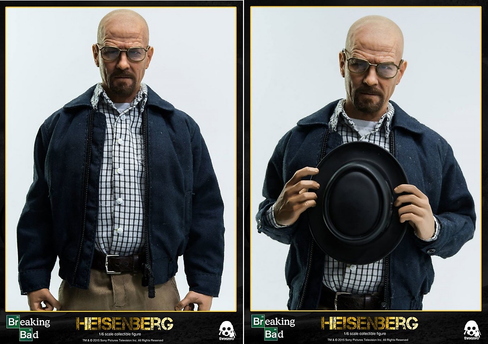 We missed this announcement during Toy Fair: ThreeZero has acquired the 1:6th scale action figure license for Breaking Bad. Their first release is Heisenberg, Walter White's later series drug lord alter-ego. The figure is currently available for pre-order through threezerostore.com and other retailers priced at $150USD/1160HKD.
