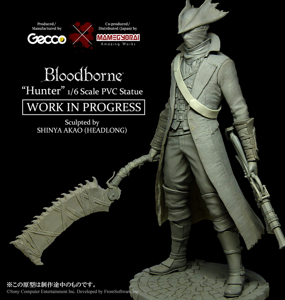 Today, Sony Computer Entertainment Inc. held a special event in Tokyo for the upcoming video game Bloodborne. As part of the presentation, a new 1:6th scale statue of the game's protagonist - the "Hunter" - was unveiled for the first time to the public. The striking statue was produced by Gecco, the Japanese figure manufacturer responsible for the Metal Gear Solid Snake Statue HERE, and will see distribution through Sentinel outside of Japan. The sculpture, still a work in-process, was sculpted by Akao Shinya, who also sculpted Gecco's Raiden, Red Pyramid Thing, and Robbie the Rabbit.