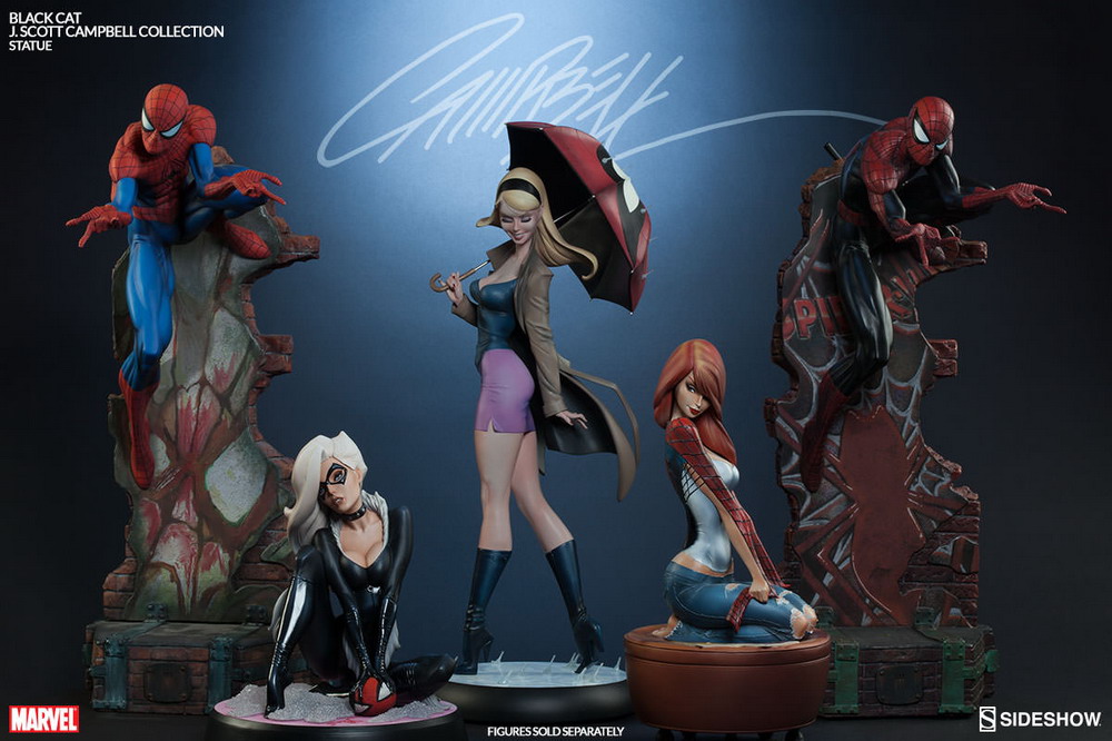Sideshow presents the newest addition to their fan-favorite J. Scott Campbell Spider-Man collection, the Black Cat Statue. Based on all-original design, J. Scott Campbell and Sideshow’s artists have teamed up once again to purr-fectly capture Spider-Man’s third leading lady.